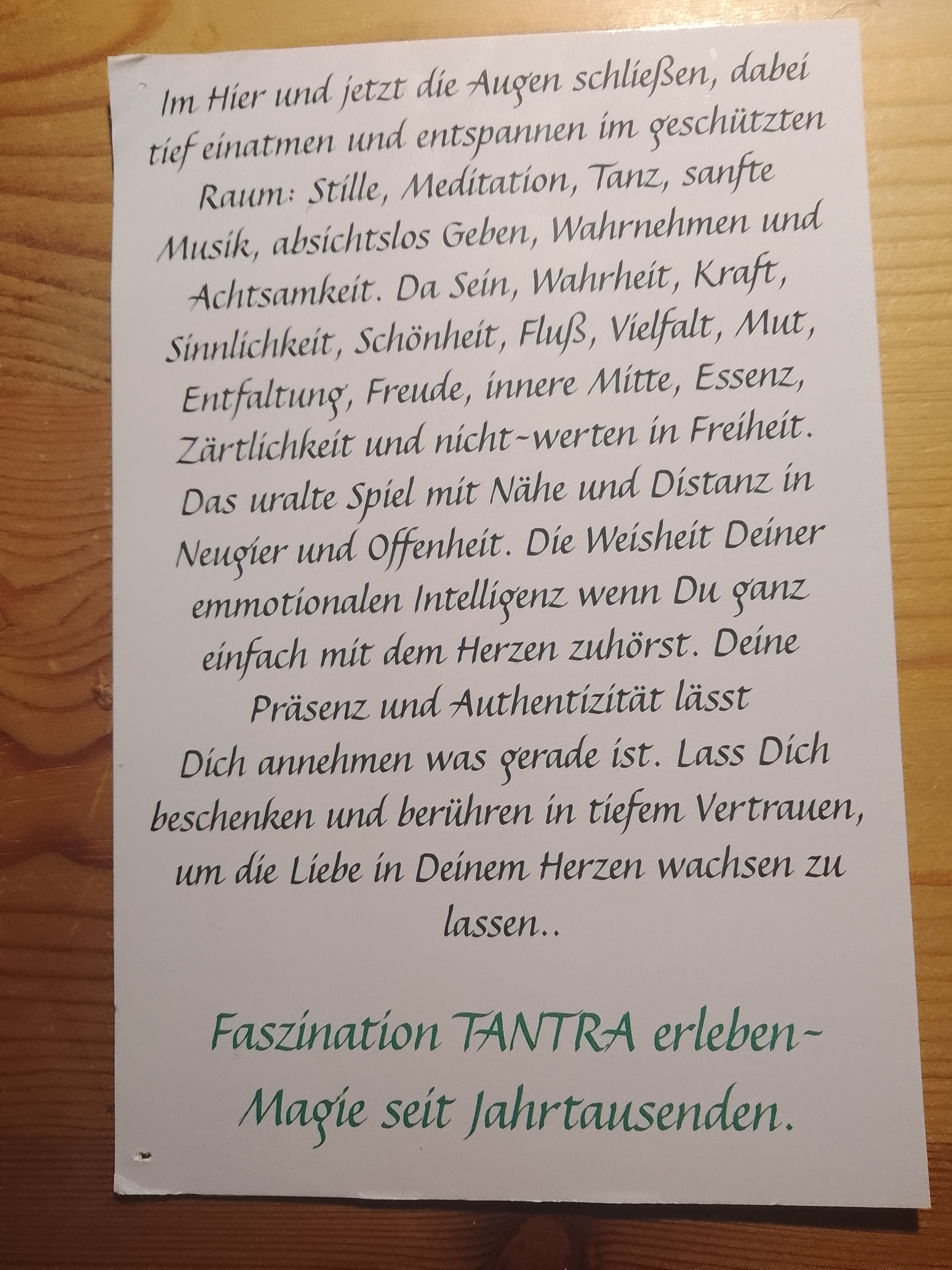 Anm. zum Verständnis.Das kel'no'reem ist ein tausende Jahre altes indianisch-schamanisches Ritual, das immer am Anfang des Tantra Wochenendes steht.